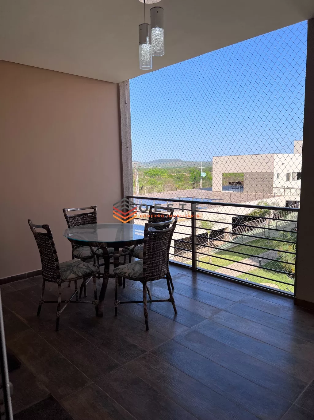 VARANDA COM MESA E CADEIRAS,