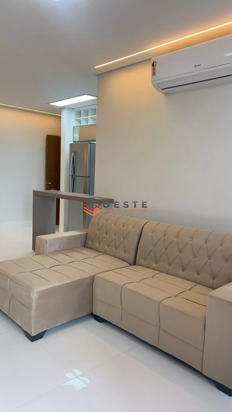 Apartamento semi mobiliado em excelente padrão, com ar-condicionado em todos os ambientes. Possui 3 quartos, sendo 1 suíte, sala ampla, cozinha planejada, área de serviço com máquina de lavar, banheiro social e varanda com churrasqueira.