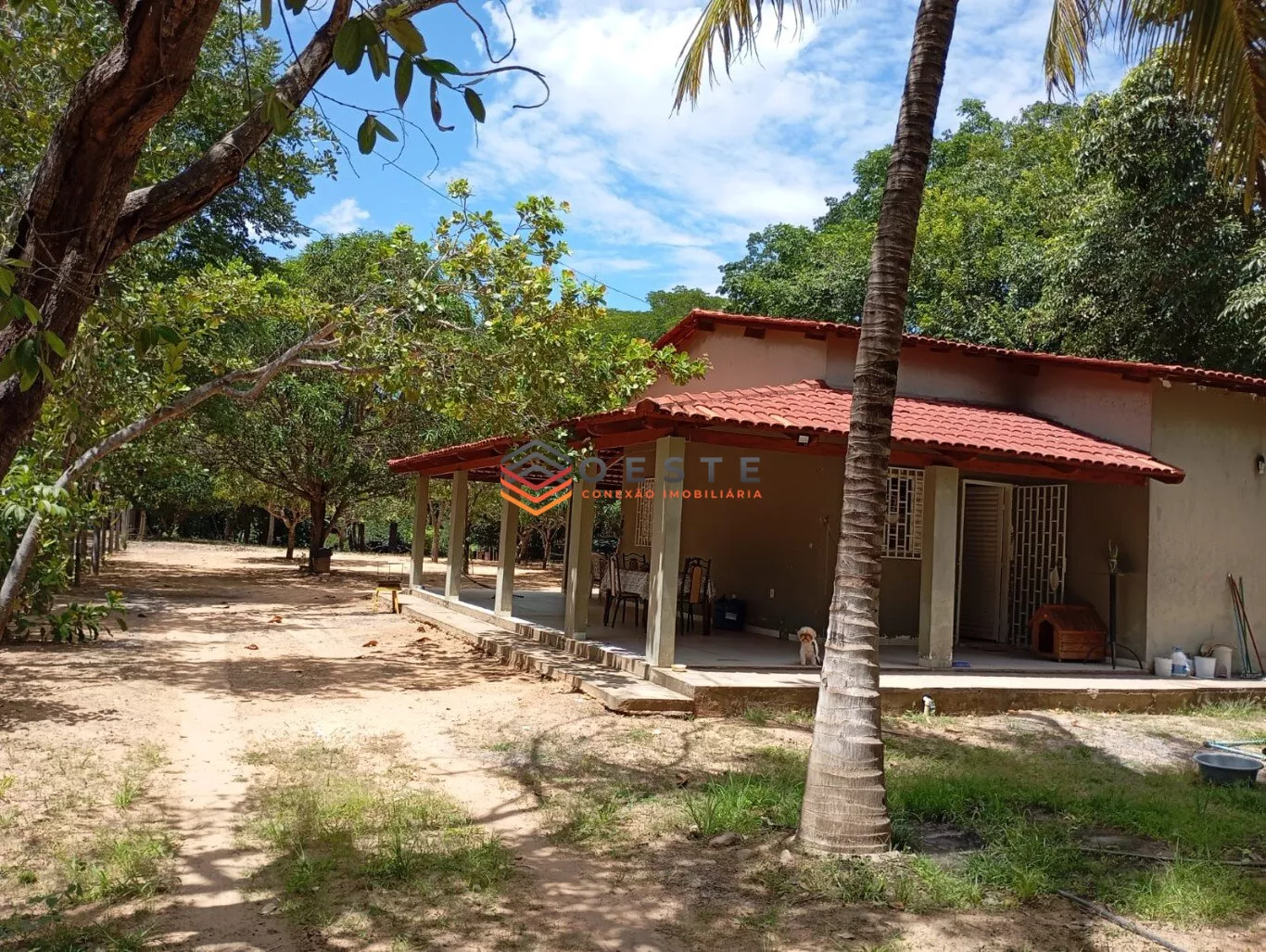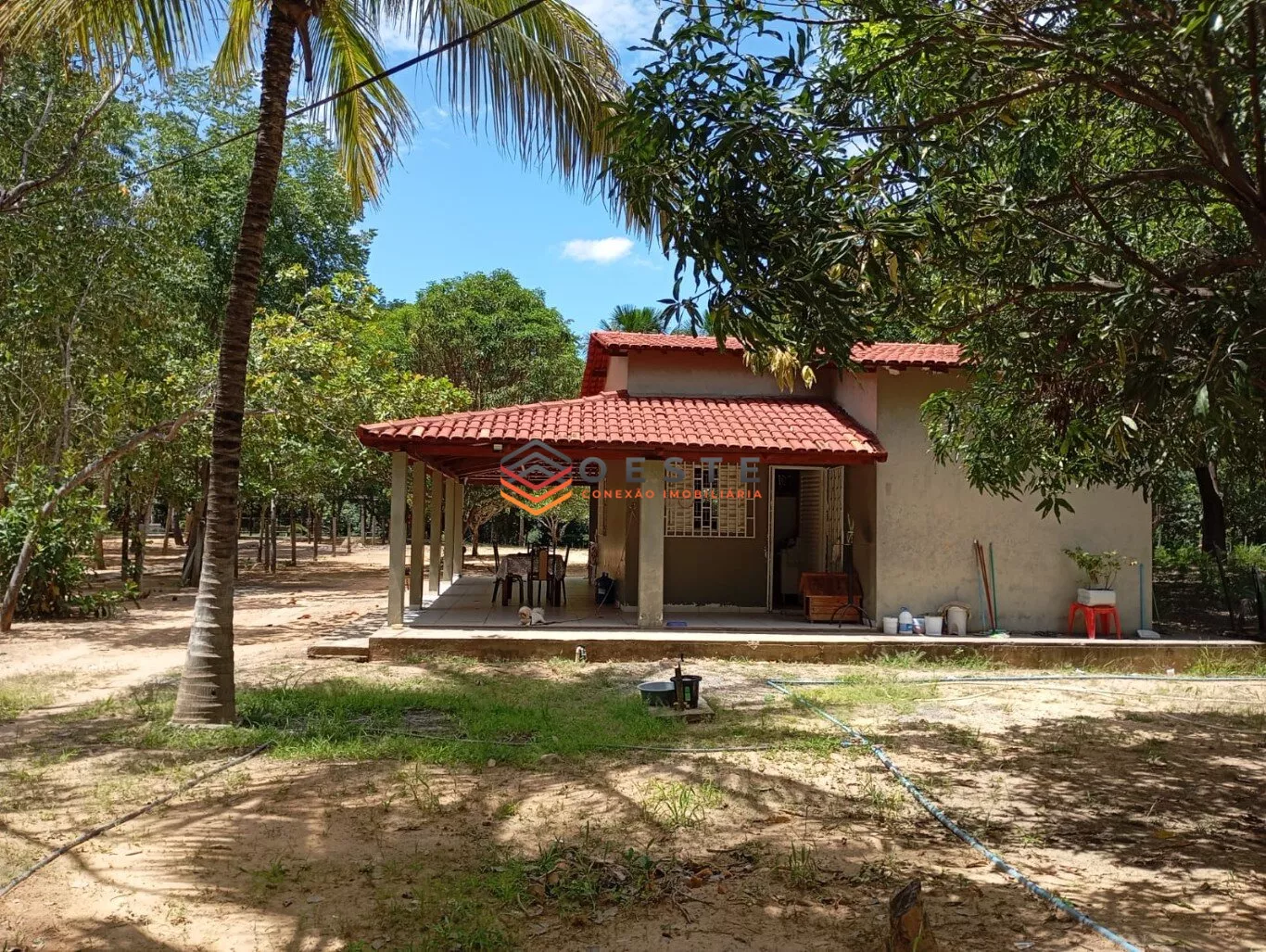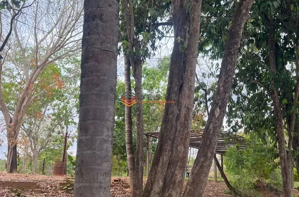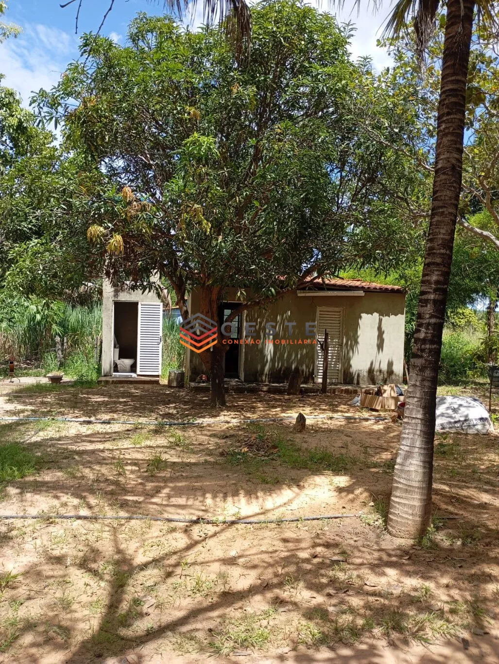 *Características:* Terreno de 20x200m com casa (3 quartos, 1 suíte, banheiro social, sala americana, varanda), 2 cômodos extras. Possui pomar com caju, manga e coco, e árvores como ipê, tamburi e buritis.